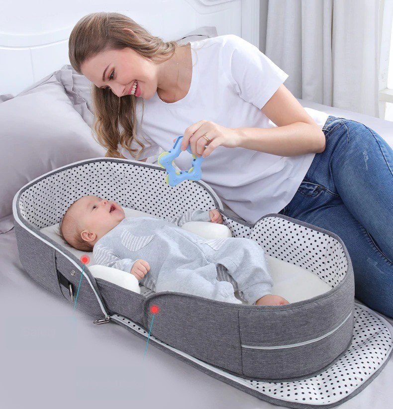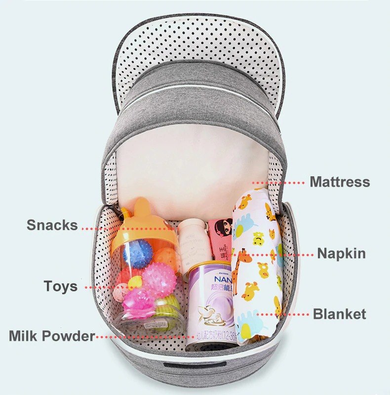 יציאה עם התינוק מהבית מצריכה מאיתנו לחשוב על הרבה פתרונות יצירתיים למצבים רבים, אין הורה שלא נתקע עם החלפת טיטול במקום לא נוח באמצע שופינג מהנה, או חשש בקמפינג מפריסת שמכה על הדשא מפני יתושים וחרקים, בדיוק בשבילכם! תיק מתקפל שיכיל את כל צרכייו של ילדכם וגם יפתח לעריסה נוחה בכל רגע!